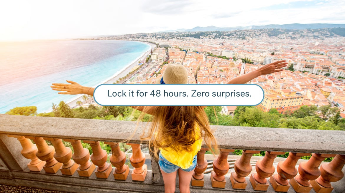 When you toggle the fixed rate option on, you hit the "pause" button on the volatile currency market. Whether the rate dips or dives in the following two days, the price you saw when you booked is the price you get.